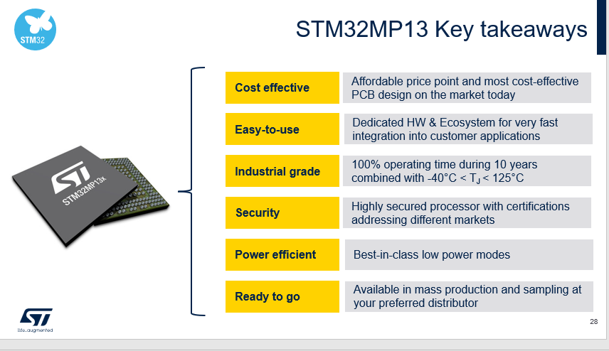 STM32MP13 users enriched with the combination of flexible power management, real-time OS (RTOS) support, and integrated security features and peripherals typically provided by embedded MCUs,