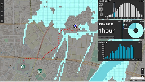 The combined solution uses flood forecasting models and precipitation data to perform sophisticated calculations and visualize flooding, as well as to address challenges and use cases in the medical, financial, public and distribution industries, such as infrastructure damage forecasting, formulation of disaster response plans and estimation of damage amounts. In addition, it aims to secure safe evacuation routes and support infrastructure protection in the event of abnormal weather and natural disasters by leveraging weather IoT sensors and weather forecast services that monitor temperature and rainfall.